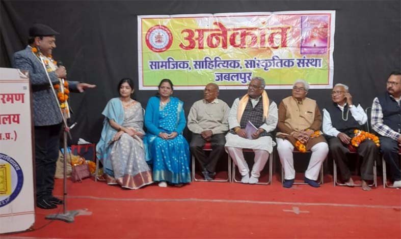 जबलपुर। नगर की साहित्यिक संस्था अनेकांत की 18 जनवरी को जानकीरमण महाविद्यालय में काव्य गोष्ठी संपन्न हुई नव वर्ष मकर संक्रांति एवं गणतंत्र दिवस विषय पर आयोजित गोष्ठी कीअध्यक्षता सुरेश मिश्रा विचित्र ने की, मुख्य अतिथि डॉ अभिजात कृष्ण त्रिपाठी, विशिष्ट अतिथि गंगा चरण मिश्रा, एवं राज सागरी ,मुख्य वक्ता राजेश पाठक प्रवीण, मंगल भाव अभिमन्यु जैन, एम एल शर्मा नयन, विशिष्ट उद्बोधन राजेंद्र मिश्रा ,संस्था प्रतिवेदन डॉ संध्या जैन श्रुति ने प्रस्तुत किया। रचना श्रीवास्तव की सरस्वती वंदना से प्रारंभ गोष्ठी में मनोज जैन मित्र, सुनील तोमर, अभय नायक, सौरभ राठौर, मदन श्रीवास्तव, महेश स्थापक , दिलीप कुमार शाह , राजसागरी, मनीष श्रीवास्तव, प्रकाश सिंह ठाकुर, प्रभा खरे अखिल, जी पी चौधरी , श्रीमती अनुकंपा नायक, आदि ने रचनाएं प्रस्तुत की कार्यक्रम के प्रथम चरण का संचालन आशुतोष तिवारी एवं द्वितीय चरण का संचालन रचना श्रीवास्तव ने किया डॉक्टर संध्या जैन श्रुति ने आभार व्यक्त किया। कार्यक्रम के संयोजक कृष्णकांत अग्रवाल ने आभार व्यक्त किया।