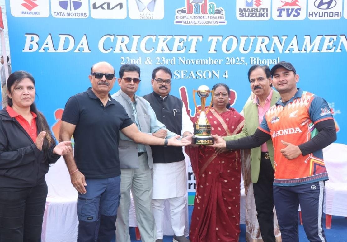 भोपाल:- भोपाल ऑटोमोबाइल डीलर वेलफेयर एसोसिएशन (BADA) द्वारा आयोजित टूर्नामेंट का शुभारंभ दिनांक 22 नवंबर 2025 को अंकुर मैदान भोपाल में भोपाल दक्षिण पश्चिम के विधायक श्री भगवान दास सबनानी के द्वारा किया गया था। इस नॉक आउट टूर्नामेंट में ऑटोमोबाइल कंपनी से जुड़ी आठ टीमों ने भाग लिया था। दो दिनों चले इस टूर्नामेंट में नॉक आउट और सेमीफाइनल मुकाबले में विजयी टीम होंडा और टीवीएस के बीच फाइनल मैच खेला गया।