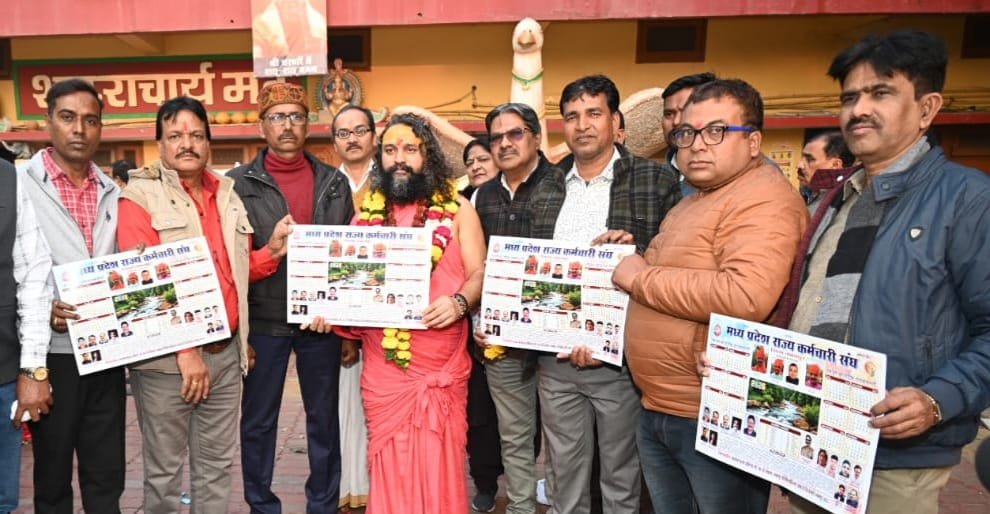 जबलपुर ।शासन द्वारा मान्यता प्राप्त मध्य प्रदेश राज्य कर्मचारी संघ जिला शाखा जबलपुर के वार्षिक कैलेंडर का विमोचन सिविक सेंटर स्थित बगुलामुखी माता मंदिर प्रांगण मे पंडित श्री चैतन्यानंद ब्रम्हचारी जी महाराज द्वारा किया गया ।