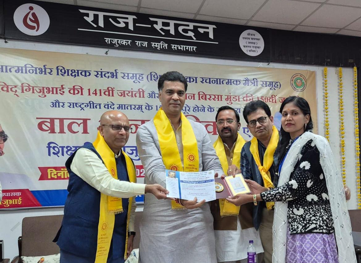 *भोपाल*:- आत्मनिर्भर शिक्षक सन्दर्भ समूह द्वारा 15 नवंबर 2025 को महान शिक्षाविद गिजुभाई जी की 141 वीं जयंती तथा भगवान बिरसा मुंडा की 150 वीं जयंती तथा साथ ही राष्ट्रगीत वंदे मातरम के 150 वर्ष पूर्ण होने पर बाल आनंद दिवस समारोह पूर्वक मनाया गया ।