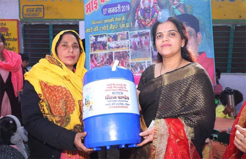 जबलपुर। माई की रसोई के 7 सात वर्ष पूर्ण होने पर आज मैहर नगर के सात आंगनवाड़ी केन्द्र में जाकर माई की रसोई धीरज, मीना पांडे ने नन्हे मुन्ने बच्चों को बिस्किट मिठाई चॉकलेट लंच टिफिन बॉक्स उपहार स्वरूप सभी बच्चों को भेंट किया और प्रत्येक आंगनवाड़ी केन्द्रों में 1-1 पानी का कंटेनर दिया साथ ही रोपवे कंपाउंड स्थित माई की रसोई में नि:शुल्क खिचड़ी का प्रसाद वितरित किया गया और माई की रसोई के 7वीं वर्षगांठ केक काटकर मनाई गई।