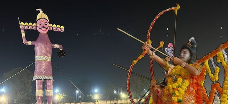 श्रीराम के आतिशी तीर से विशालाकाय 75 फुट ऊंचे रावण और कुंभकर्ण के पुतले ढेर हो गये। वे धू-धू कर जल उठे। पुतले में भरे बम जोरदार आवाज के साथ फूटे- ऐतिहासिक पर्व विजयादशमी पर एक बार फिर अहंकार, असत्य, अधर्म का दहन हुआ और सत्य की असत्य पर महाविजय हुई। रावण और कुंभकर्ण के विशालकाय पुतले 10 मिनिट में खाक हो गये।