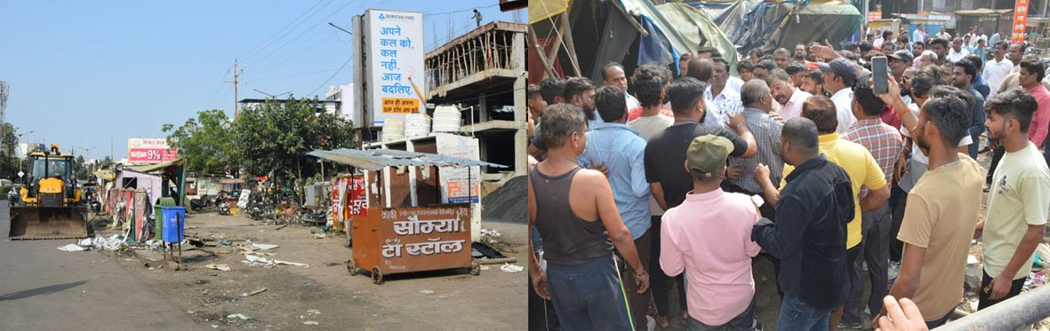 जबलपुर। शहर में अतिक्रमण हटाने की मुहिम के तहत शुक्रवार को नगर निगम का अतिक्रमण का विरोधी दस्ता विजय नगर स्थित चौपाटी पहुंचा, जहां अचानक हुई कार्रवाई से इलाके में हड़कंप मच गया। निगम की टीम बुल्डोजर लेकर जैसे ही मौके पर पहुंची, चौपाटी में ठेले और टपरे लगाने वाले व्यापारी भी वहां पहुंच गए और जोरदार विरोध प्रदर्शन शुरू कर दिया।